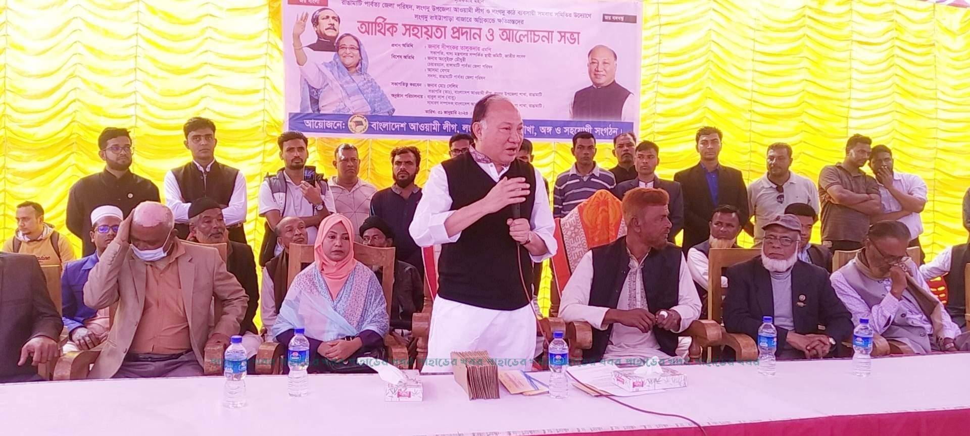 মঙ্গলবার (৩১ জানুয়ারি), রাঙামাটির লংগদু উপজেলার বাইট্টাপাড়া বাজারে অগ্নিকান্ডে ক্ষতিগ্রস্থদের মাঝে আর্থীক সহায়তা প্রদান ও আলোচনা সভায় প্রধান অতিথির বক্তব্যে দীপংকর তালুকদার এমপি আশ্বাস প্রদান করেন।