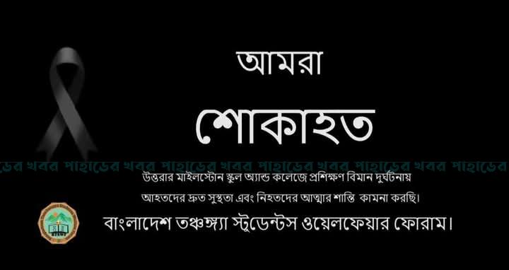 বিমান দুর্ঘটনায় নিহতদের স্মরণে শোক প্রকাশ করেছে বাংলাদেশ তঞ্চঙ্গ্যা কল্যাণ সংস্থা (বাতকস্) কেন্দ্রীয় কমিটি। বুধবার ( ২৩ জুলাই) সংস্থাটির এক শোক বার্তায় এ শোক প্রকাশ করে।