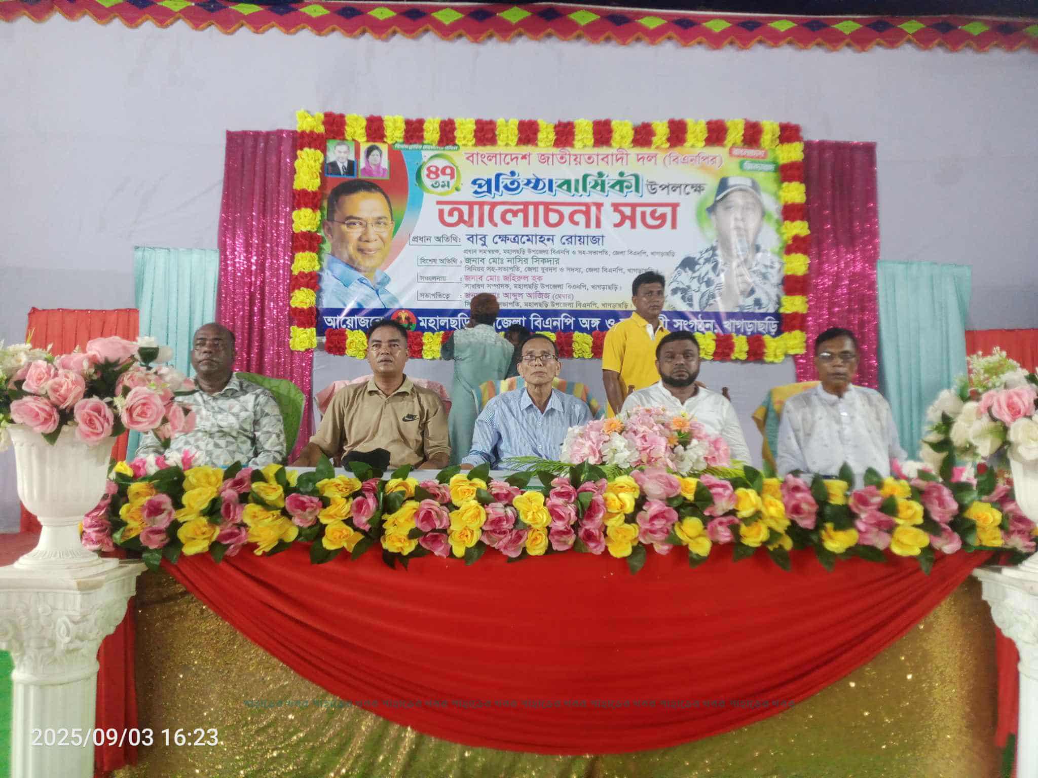 বাংলাদেশ জাতীয়তাবাদী দল (বিএনপি) এর ৪৭তম প্রতিষ্ঠাবার্ষিকী উপলক্ষে মহালছড়ি উপজেলা বিএনপি এবং অঙ্গ ও সহযোগী সংগঠনের উদ্যোগে বর্ণাঢ্য আয়োজন সম্পন্ন হয়েছে। আলোচনা সভা ও আনন্দ র্যালির মধ্য দিয়ে দিনটি উদযাপন করা হয়।