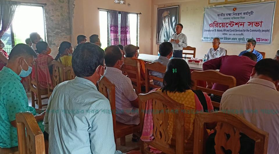 সভায় স্বাগত বক্তব্যে ব্র্যাকের ম্যানেজার অনিল বরন দেওয়ান যক্ষ্মা রোগের অবস্থা ও জাতীয় যক্ষ্মা নিয়ন্ত্রণ কর্মসূচির লক্ষ্যমাত্রা, যক্ষ্মা কীভাবে ছড়ায়, যক্ষ্মা রোগের লক্ষণ, তামাকের সঙ্গে যক্ষ্মার সম্পর্ক, রোগ শনাক্তকরণ ও করণীয়, যক্ষ্মা রোগ সম্পর্কে সামাজিক ধারণা এবং যক্ষ্মা নিয়ন্ত্রণে করণীয় বিষয়ে আলোচনা করেন। তিনি আরো বলেন ব্র্যাক কর্মীরা যক্ষার নিরামেয়ের পাশাপাশি ম্যালেরিয়া নিয়ন্ত্রণে কাজ করে যাচ্ছে। ব্র্যাকের মাধ্যমে বিনা মূল্য যক্ষার চিকিৎসা প্রদান করা হয়।