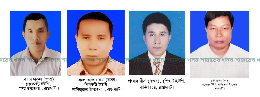 গ্রেপ্তারকৃতরা হলেন- রাঙামাটি সদর উপজেলার কুতুকছড়ি ইউপি চেয়ারম্যান কানন চাকমা, নানিয়ারচর উপজেলার ঘিলাছড়ি ইউপি চেয়ারম্যান অমল কান্তি চাকমা, বুড়িঘাট ইউপি চেয়ারম্যান প্রমোদ খীসা ও সাবেক্ষ্যং ইউপি চেয়ারম্যান সুপন চাকমা।