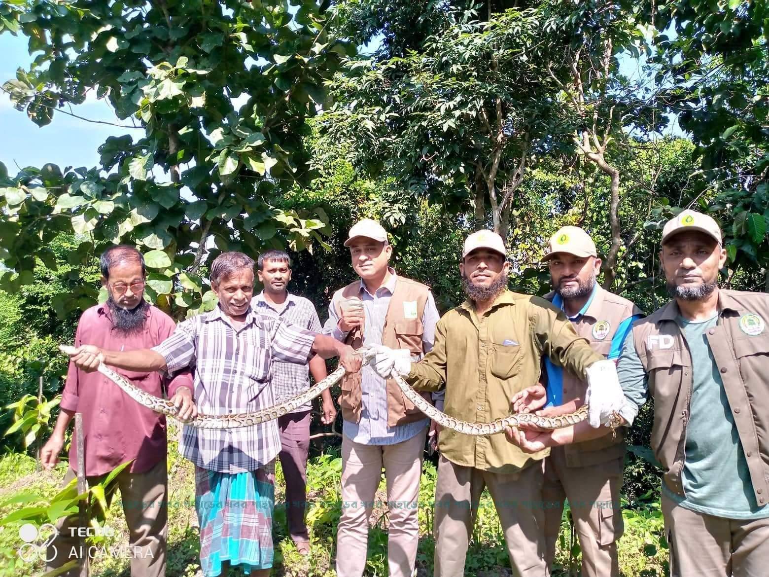 কাপ্তাইয়ে আবারো প্রায় ৭ ফুট দৈর্ঘ্যের দুটি অজগর সাপ অবমুক্ত করেছে বনবিভাগ।