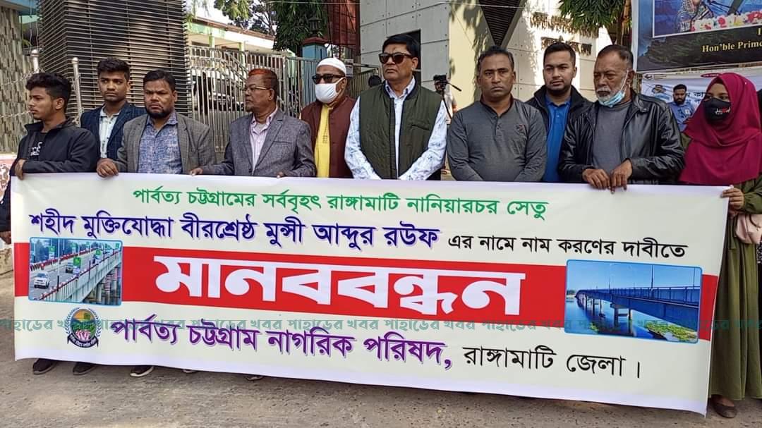 রাঙামাটির নানিয়াচর উপজেলার চেঙ্গী সেতুটি চুনীলাল দেওয়ানের নামে নাম করণের প্রতিবাদ ও তা বাতিল করে সেতুটি ‘বীরশ্রেষ্ঠ মুন্সি আব্দুর রউফ’ এর নামে নামকরণ করার দাবিতে মানববন্ধন কর্মসূচি পালন করেছে