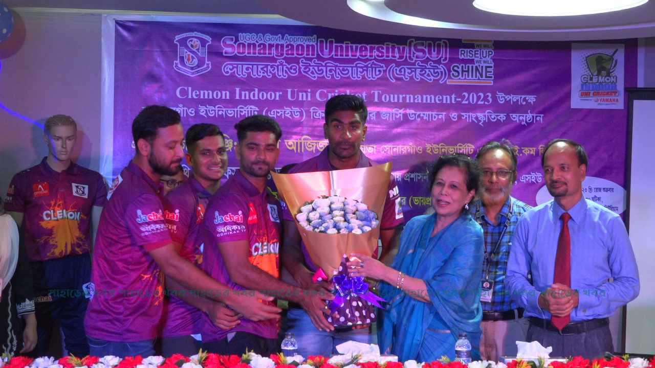 সোনারগাঁও ইউনিভার্সিটির ক্রিকেট টিম তাদের জার্সির মোড়ক উন্মোচন করলো, আজ শুক্রবার (২১ জুলাই) গ্রিন রোডস্থ ইউনিভার্সিটির ক্যাম্পাস অডিটোরিয়ামে। অনুষ্ঠানের প্রথম পর্বে জার্সির মোড়ক উন্মোচনে প্রধান অতিথি হিসেবে অনলাইনে যুক্ত ছিলেন সোনারগাঁও ইউনিভার্সিটি এবং যাচাই ডট কম লিমিটেডের প্রতিষ্ঠাতা ইঞ্জিনিয়ার আব্দুল আজিজ।