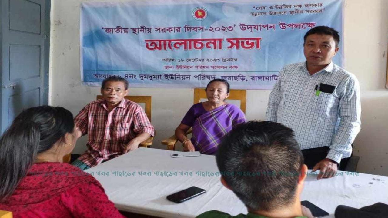 এদিকে “সেবা ও উন্নতির দক্ষ রূপকার, উন্নয়নে – উদ্ভাবনে স্থানীয় সরকার” প্রতিপাদ্যকে সামনে রেখে দুমদুম্যা ইউনিয়ন পরিষদের দিবসটি উপলক্ষে আলোচনা সভা অনুষ্ঠিত হয়েছে। আলোচনা সভায় দুমদুম্যা ইউনিয়ন পরিষদের ভারপ্রাপ্ত চেয়ারম্যান সাধন কুমার চাকমার সভাপতিত্বে বক্তব্য রাখেন সংরক্ষিত ওয়ার্ড সদস্য বকুল বালা চাকমা, সাপনেম পাংখোয়া, ওয়ার্ড সদস্য কালা চোখা তঞ্চঙ্গ্যা, সচিব অতুল চাকমা, স্থানীয় কার্বারী রনজিৎ চাকমা প্রমূখ।