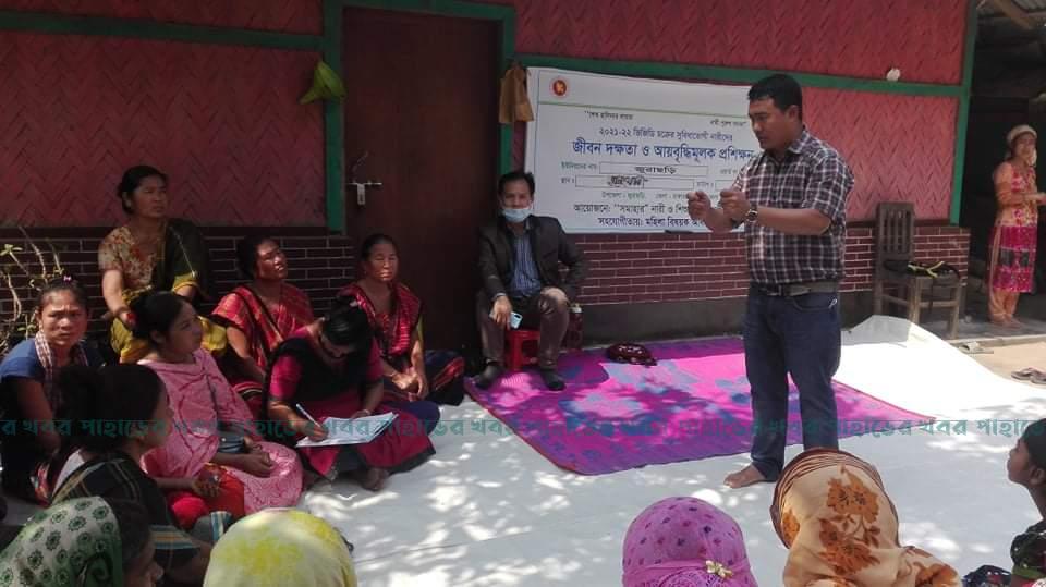 মঙ্গলবার বেসরকারি উন্নয়ন সংস্থা “সমহার” নারী ও শিশু উন্নয়ন সোসাইটি আয়োজনে বালুখালী মূখ পাড়ায় অনুষ্ঠিত প্রশিক্ষণের প্রশিক্ষক হিসেবে উপস্থিত ছিলেন উপজেলা মহিলা বিষয়ক কর্মকর্তা তরুণ চাকমা। এ সময় সমহারের মাঠ প্রশিক্ষক ঝিমি চাকমা উপস্থিত ছিলেন।