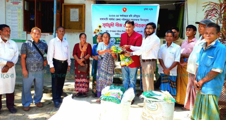 বিতরণ অনুষ্ঠানে প্রধান অতিথি অংসুইছাইন চৌধুরী বলেন, জেলা পরিষদের অর্থায়নে পরবর্তীতে  সূর্যমুখীর তেল নিষ্কাশন মেশিনের ব্যবস্থা করা হবে।