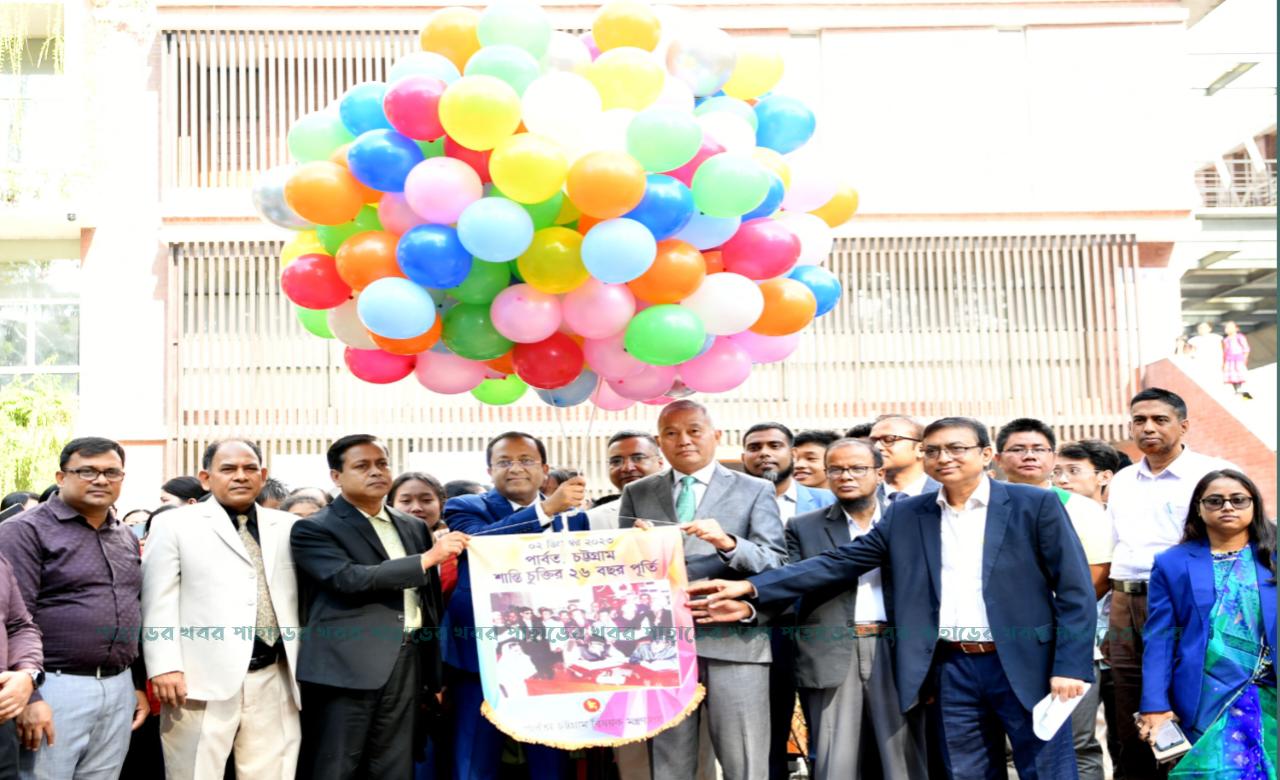 এর আগে সকালে ধানমন্ডির ৩২ নম্বরে জাতির পিতা বঙ্গবন্ধু শেখ মুজিবুর রহমানের প্রতিকৃতিতে পুষ্পস্তবক অর্পণ এবং বেইলী রোডে শেখ হাসিনা পার্বত্য চট্টগ্রাম ঐতিহ্য সংরক্ষণ ও গবেষণা কেন্দ্র প্রাঙ্গনে ফেস্টুন উড্ডয়ন ও কবুতর অবমুক্তির মাধ্যমে পার্বত্য চট্টগ্রাম চুক্তি দিবসের শুভ সূচনা করেন পার্বত্য চট্টগ্রাম বিয়ষক মন্ত্রণালয়ের সচিব মোঃ মশিউর রহমান এনডিসি। এসময় পার্বত্য চট্টগ্রাম উন্নয়ন বোর্ডের চেয়ারম্যান সুপ্রদীপ চাকমাসহ পার্বত্য মন্ত্রণালয়ের কর্মকর্তা কর্মচারীগণ ও ঢাকায় বসবাসরত তিন পার্বত্য জেলার অধিবাসীগণ এসময় উপস্থিত ছিলেন।