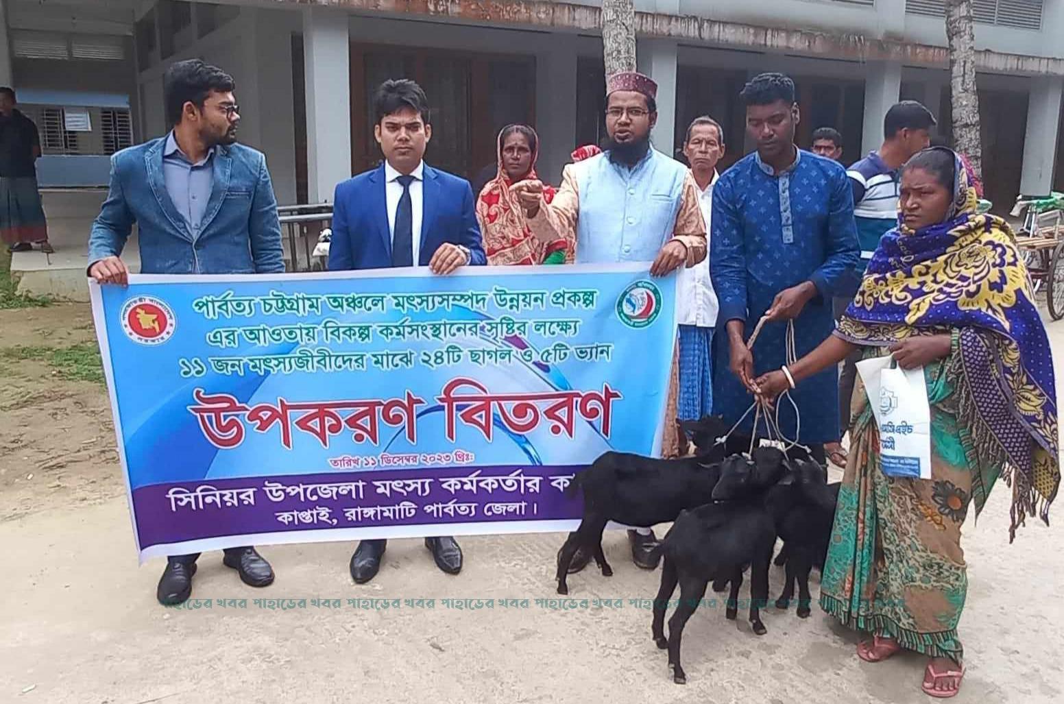 পার্বত্য চট্টগ্রাম অঞ্চলে মৎস্যসম্পদ উন্নয়ন প্রকল্পের অর্থায়নে দরিদ্র জেলেদের বিকল্প কর্মসংস্থান সৃষ্টির লক্ষ্যে উপজেলা মৎস্য দপ্তর, কাপ্তাই এর সার্বিক ব্যবস্থাপনায় কাপ্তাই উপজেলার ৬জন জেলের মাঝে ২৪টি ছাগল এবং ৫জন জেলের মাঝে ৫টি রিক্সা ভ্যান বিতরণ করা হয়েছে।