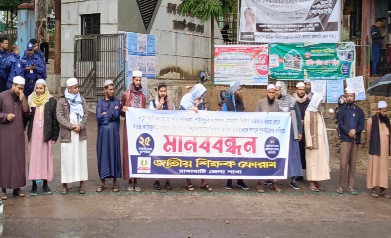 নতুন কারিকুলামে অসঙ্গতি দূরীকরণ, পাঠ্যপুস্তক সংশোধন,মাদ্রা শিক্ষার স্বকীয়তা বজায় রেখে স্বতন্ত্র কারিকুলাম প্রণয়ন এবং ব্র্যাক বিশ্ব বিদ্যালয়ের শিক্ষক আসিফ মাহতাবকে স্বপদে পুনর্বহালের দাবিতে রাঙামাটিতে ইসলামী আন্দোলন রাঙামাটি জেলা শাখায় উদ্যোগে জেলা প্রশাসক কার্যালয়ের সামনে আজ দুপুর পৌনে ১টায় মানববন্ধন অনুষ্ঠিত হয়।