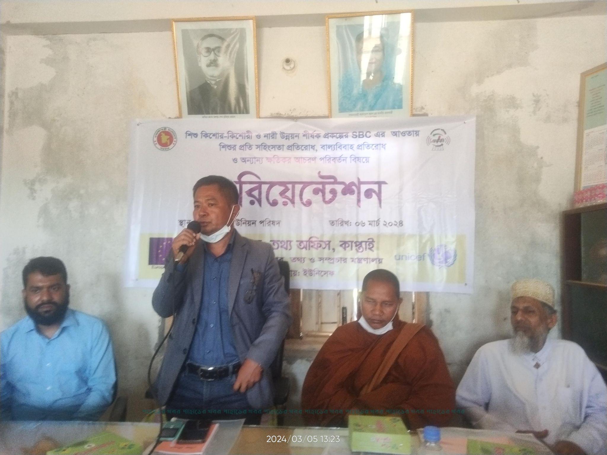 মঙ্গলবার (৬ মার্চ) সকাল ১০:০০ টায় কাপ্তাই তথ্য অফিসের আয়োজনে,গণযোগাযোগ অধিদপ্তর ও তথ্য ও সম্প্রচার মন্ত্রণালয় এবং ইউনিসেফের সহযোগিতায় ১নং ইউনিয়ন পরিষদ সভা কক্ষে এই অরিয়েন্টেশন অনুষ্ঠিত হয়েছে।