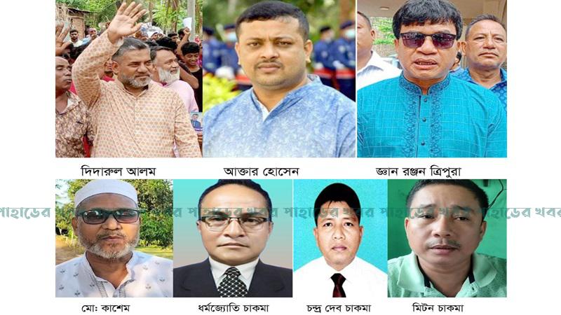 খাগড়াছড়ি সদর উপজেলায় চেয়ারম্যান পদে জেলা আওয়ামী লীগের সাংগঠনিক সম্পাদক দিদারুল আলম (আনারস), সদর উপজেলা আ.লীগের কোষাধ্যক্ষ ও বর্তমান ভাইস চেয়ারম্যান মো. আকতার হোসেন (মোটরসাইকেল), ৩নং গোলাবাড়ী ইউনিয়ন আওয়ামী লীগের সভাপতি জ্ঞান রঞ্জন ত্রিপুরা (কৈ মাছ), জাতীয় পার্টির নজরুল ইসলাম (লাঙল), বাংলাদেশ ত্রিপুরা কল্যাণ সংসদ কেন্দ্রীয় কমিটির সভাপতি সুশীল জীবন ত্রিপুরা (টেলিফোন) ও ভারত প্রত্যাগত শরণার্থী কল্যাণ সমিতির সাধারণ সম্পাদক সন্তোষিত চাকমা বকুল (দোয়াত-কলম) প্রতিদ্বন্দ্বিতা করছে। সদর উপজেলায় ৪১টি ভোট কেন্দ্রে মোট ভোটার ৯২ হাজার ৮৬৪ জন। তার মধ্যে পুরুষ ভোটার ৪৭ হাজার ৮৯৫ আর নারী ভোটার ৪৪ হাজার ৯৬৯জন।