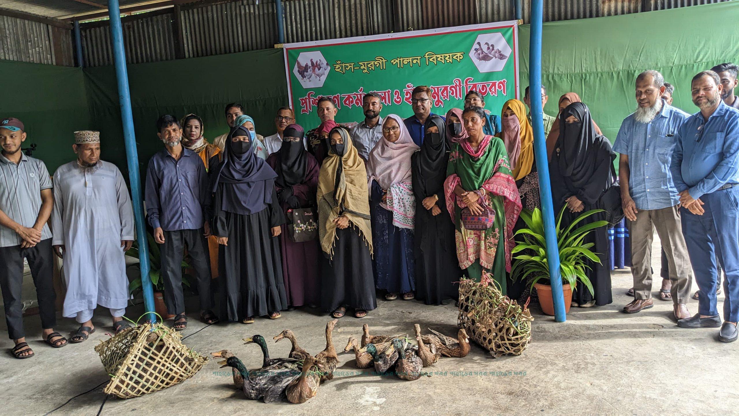 কর্মশালা শেষে উপস্থিত উপকারভোগীদের মাঝে প্রণোদনা হিসেবে হাঁস-মুরগি বিতরণ করা হয়।