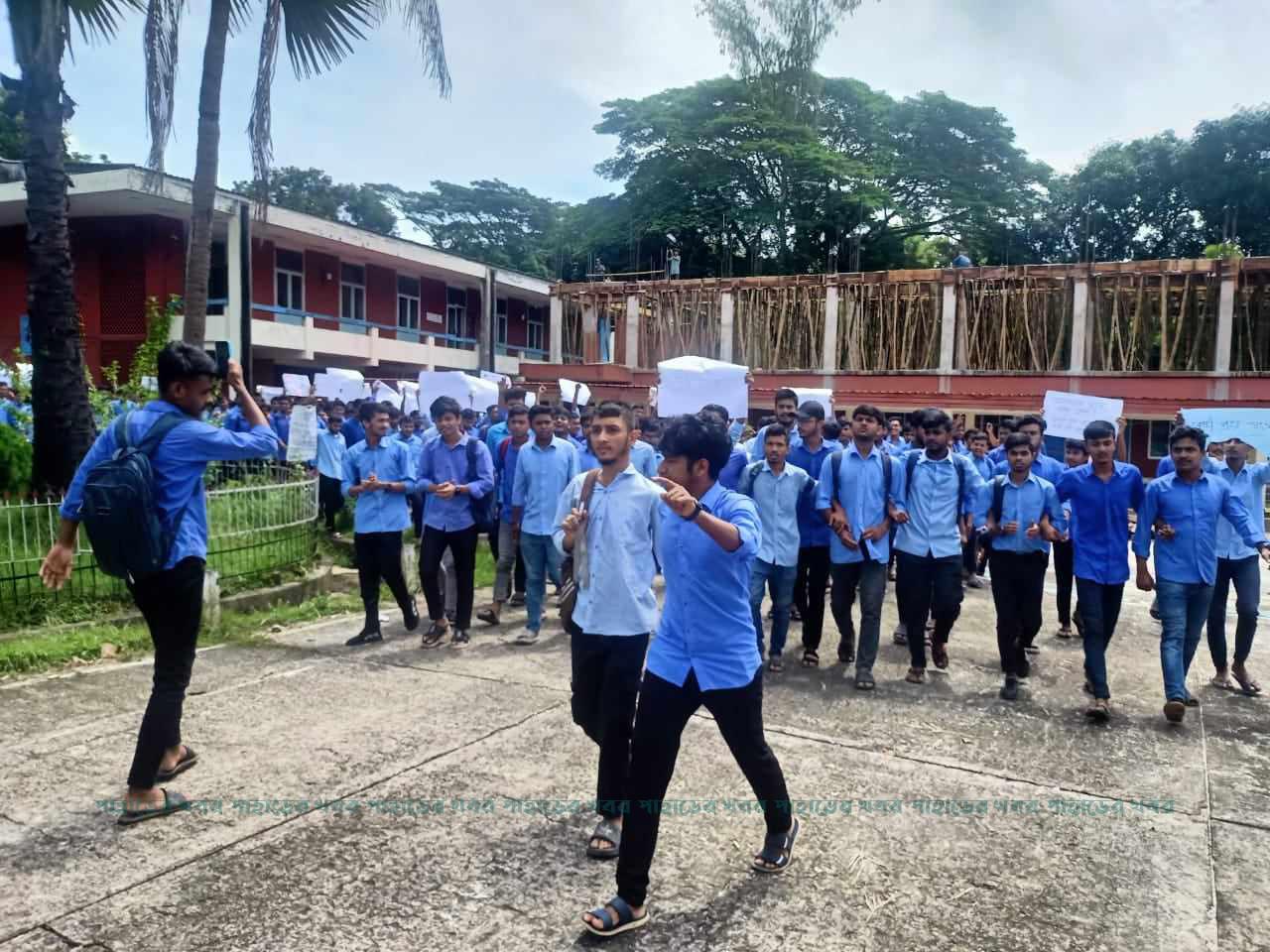 প্রতিষ্ঠানের ইলেক্ট্রিক্যাল ডিপার্টমেন্টের ৬ষ্ট সেমিষ্টারের শিক্ষার্থী মোঃ মুজাহিদ ও মেকানিক্যাল ডিপার্টমেন্টের ৬ষ্ট সেমিষ্টারের শিক্ষার্থী মোঃ জাহিদুল ইসলাম তামিম এর নেতৃত্বে অনুষ্ঠিত বিক্ষোভ মিছিলে প্রতিষ্ঠানে অধ্যয়নরত দুই শতাধিক শিক্ষার্থী অংশ নেন।