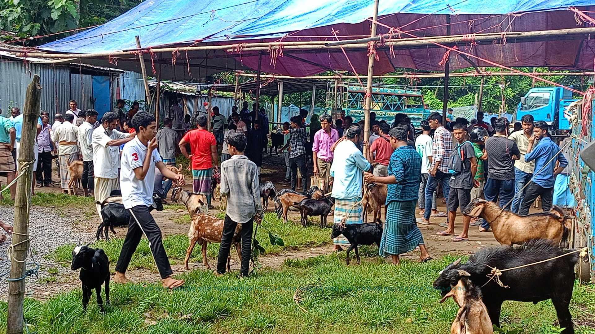বৃহস্পতিবার (১৫ আগস্ট) সকাল সাড়ে ৮ টায় রাইখালী বাজারে ছাগলের বাজারে গিয়ে দেখা যায় ক্রেতা বিক্রেতার ভীড়।