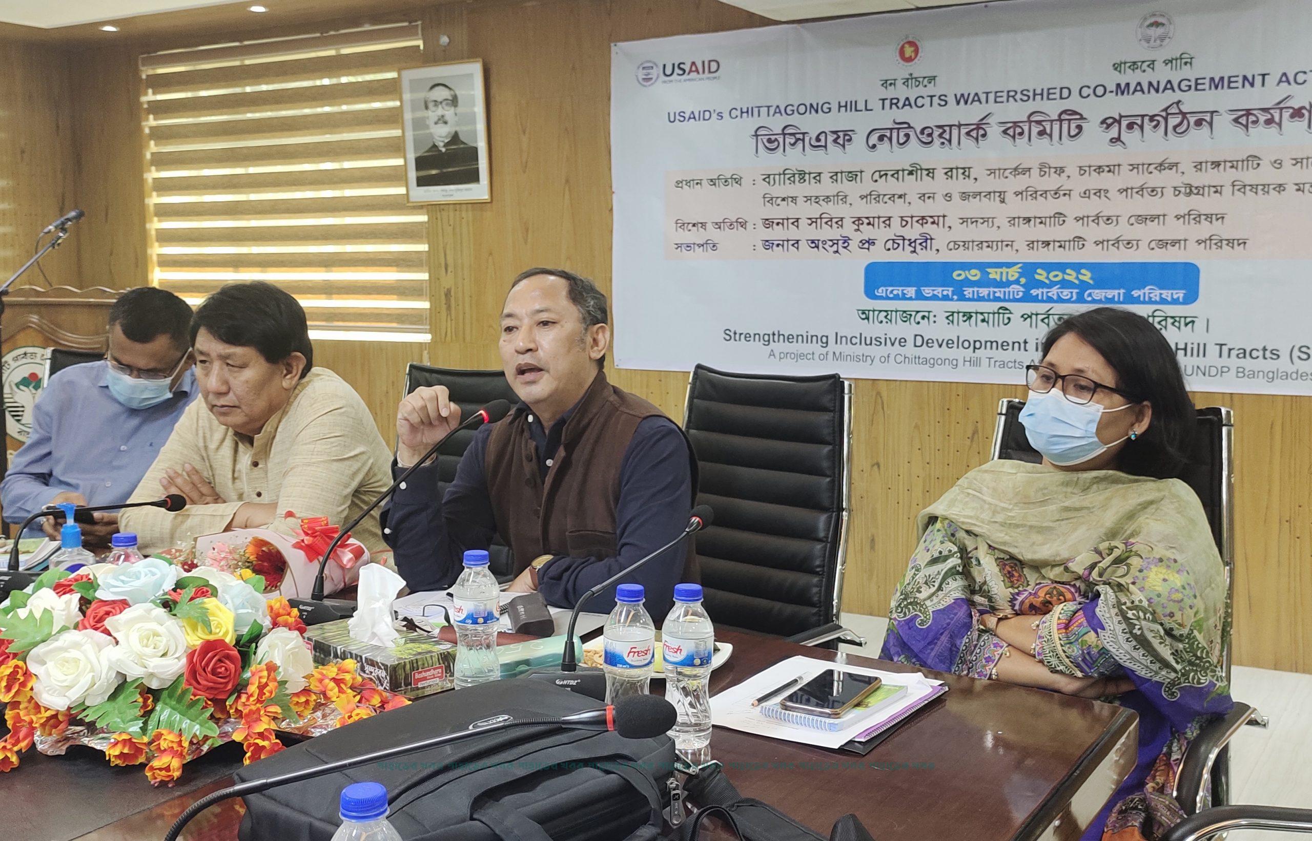 সভাপতির বক্তব্যে রাঙামাটি জেলা পরিষদ চেয়ারম্যান অংসুই প্রু চৌধুরী বলেন, ভিসিএফ নিয়ে একটি মহলের ভ্রান্ত ধারণা আছে। মহলটি মনে করে ভিসিএফ শুধু পাহাড়িদের স্বার্থ রক্ষা করে। এ ধারণা রাখা ঠিক নয়।