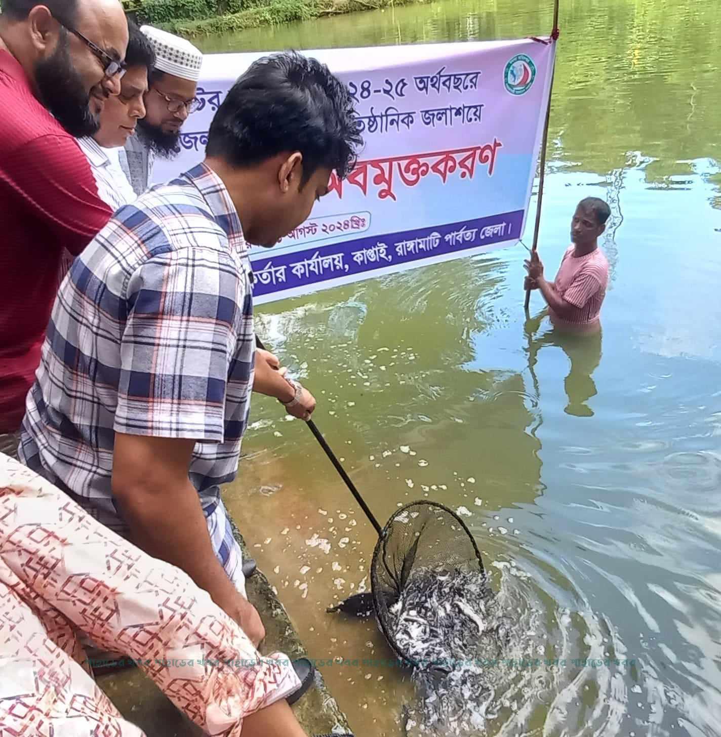 কাপ্তাই উপজেলার প্রাতিষ্ঠানিক জলাশয়ে মাছের পোনা অবমুক্তকরণ
