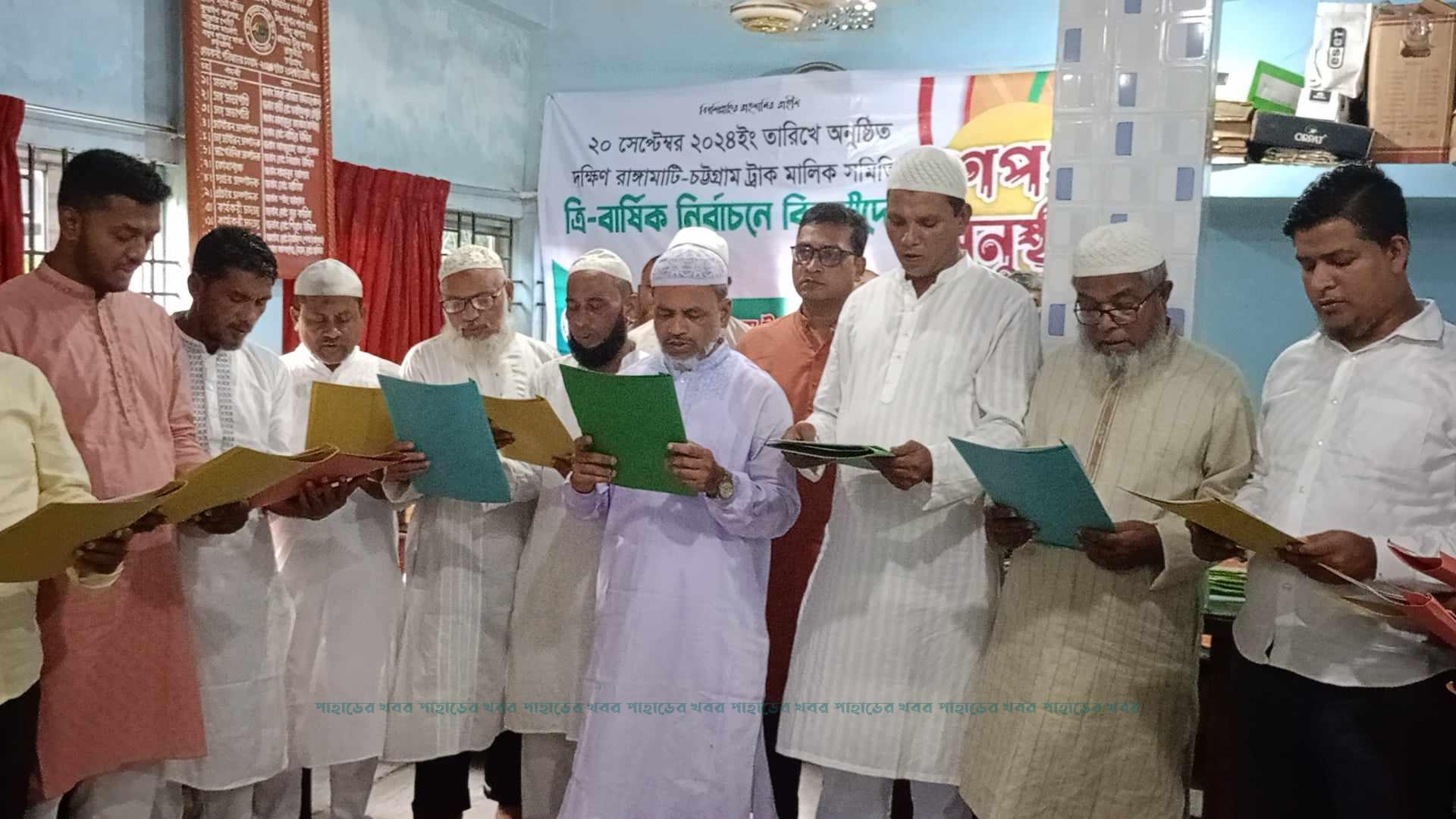 শপথ নিলেন দক্ষিণ রাঙামাটি -চট্টগ্রাম ট্রাক মালিক সমিতির নির্বাচিত সদস্যরা।