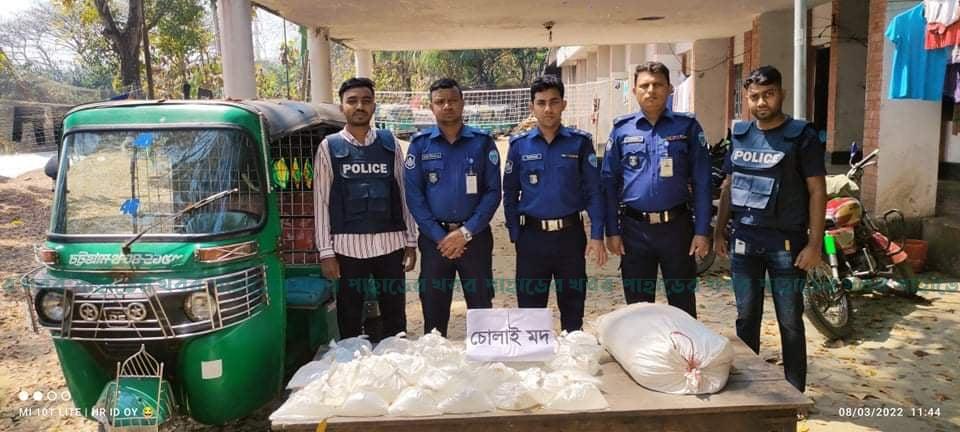 কাপ্তাই থানা পুলিশ জানায়, গোপন সংবাদ পেয়ে কাপ্তাই থানার ওসি জসিম উদ্দিনের নেতৃত্বে উপ পরিদর্শক (এসআই) ইখতিয়ার হোসেন, এএসআই লিমন মিয়া, এএসআই আরিফুর রহমান ও সঙ্গীয় ফোর্স বারোঘোনিয়া পেট্রোল পাম্প এলাকায় অভিযানে যায়। সেখানে তথ্যর ভিত্তিতে সিএনজি তল্লাশি করে ৮৪ লিটার মদ জব্দ করা হয়। এর আগে পুলিশের উপস্থিতি জানতে পেরে মদ পাচারকারীরা পালিয়ে যায়। পুলিশ মদ ও সিএনজি জব্দ করে কাপ্তাই থানায় নিয়ে আসে।