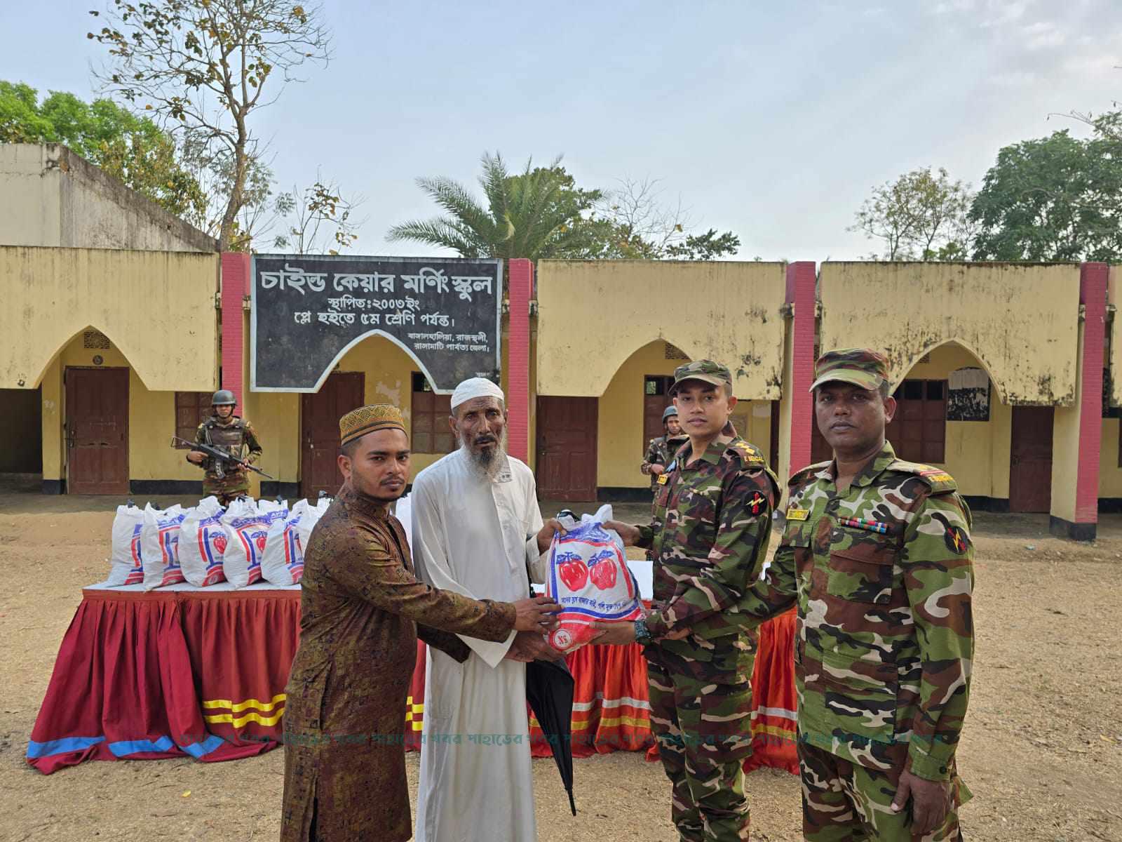 শুক্রবার সকালে বাঙ্গালহালিয়া চাইল্ড কেয়ার মনিং স্কুল মাঠে বাঙ্গালহালিয়া আর্মি ক্যাম্পের ক্যাম্প কমান্ডার উপস্থিতিতে ইফতার সামগ্রী বিতরণ করা হয়।