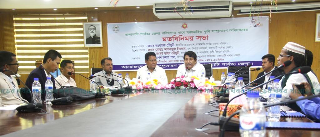 রাঙামাটি পার্বত্য জেলা পরিষদ চেয়ারম্যান অংসুই প্রু চৌধুরী বলেন, দেশের অন্যান্য এলাকা থেকে পার্বত্য চট্টগ্রামের ভৌগোলিক অবস্থা ভিন্ন হওয়া সত্তেও বিশেষ কর্মসূচি বাস্তবায়নের মাধ্যমে এ এলাকার কৃষির উন্নয়নে কাজ করা যায়। খাদ্য নিরাপত্তা সৃষ্টিতে কৃষি উন্নয়নে বিকল্প নাই। এজন্য তিনি পরিষদ এবং হস্তান্তরিত বিভাগগুলির মধ্যে সমন্বয়ের মাধ্যমে এলাকার সার্বিক উন্নয়নে সকলকে আন্তরিকতার সাথে কাজ করার জন্য আহ্বান জানান।