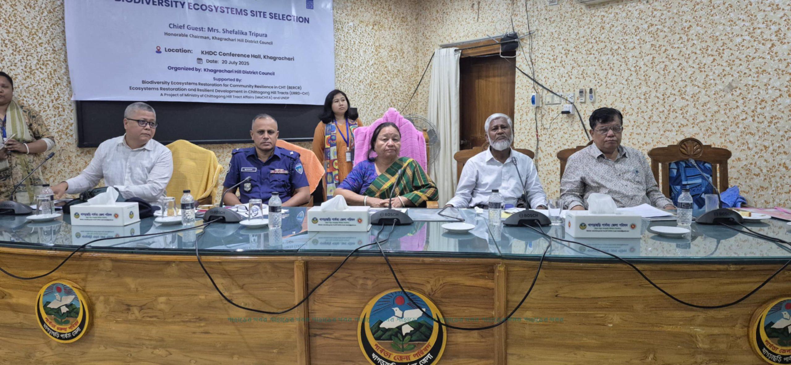 খাগড়াছড়িতে অনুষ্ঠিত হলো পরিবেশ ও জীববৈচিত্র্য সংরক্ষণে একটি গুরুত্বপূর্ণ উদ্যোগ— “বায়োডাইভারসিটি ইকোসিস্টেমস সাইট সিলেকশন” শীর্ষক কর্মসূচি। শনিবার (২০ জুলাই ) খাগড়াছড়ি পার্বত্য জেলা পরিষদ (KHDC)-এর কনফারেন্স হলে এ কর্মসূচির আনুষ্ঠানিক উদ্বোধন করেন পরিষদের সম্মানিত চেয়ারম্যান শেফালিকা ত্রিপুরা।