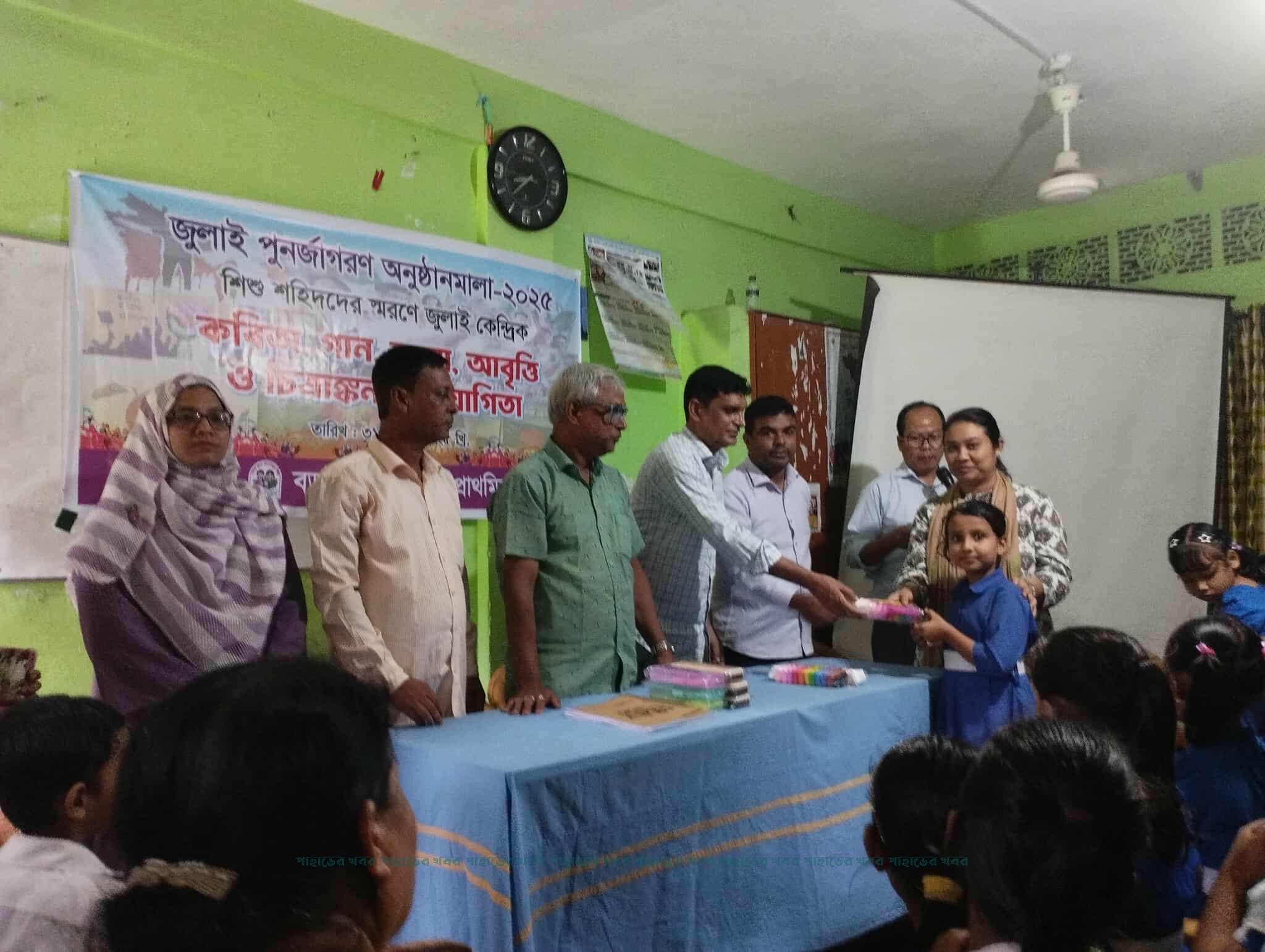 জুলাই পুর্নজাগরণ অনুষ্ঠানমালা উপলক্ষে শিশু শহিদদের স্মরণে রাঙামাটির কাপ্তাই বড়ইছড়ি সরকারি প্রাথমিক বিদ্যালয় মিলনায়তনে বৃহস্পতিবার (৩১ জুলাই) সকালে জুলাই কেন্দ্রিক কবিতা, গান, নাচ এবং চিত্রাংকন প্রতিযোগিতা অনুষ্ঠিত হয়। এতে বিভিন্ন শ্রেণীর শতাধিক শিক্ষার্থী অংশ নেন।