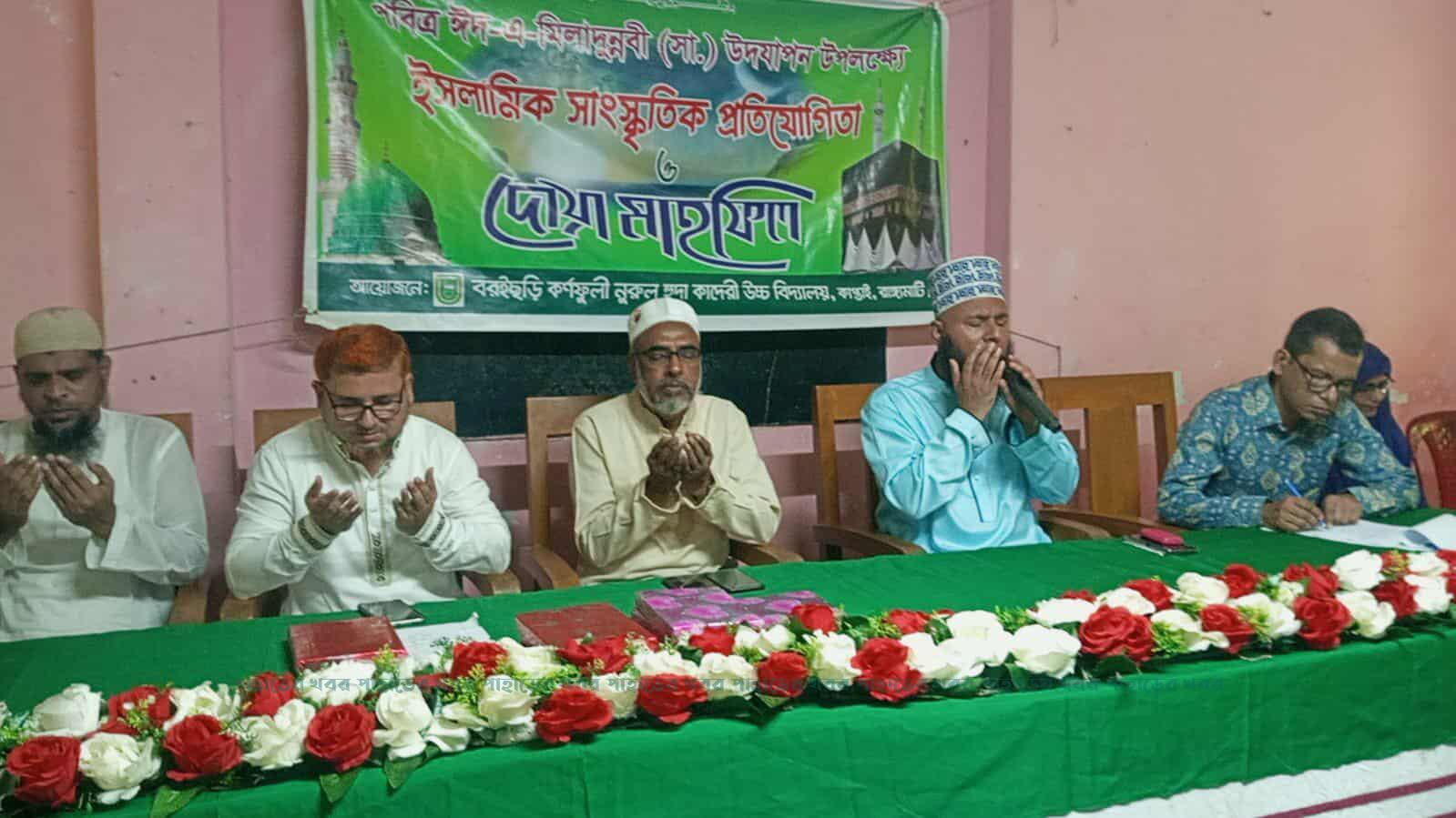 বরইছড়ি কর্ণফুলী নুরুল হুদা কাদেরী উচ্চ বিদ্যালয় এর প্রধান শিক্ষক জয়সীম বড়ুয়া’র সভাপতিত্বে এ সময় প্রধান অতিথি হিসেবে উপস্থিত ছিলেন স্কুলের দাতা খোরশেদুল আলম কাদেরী। এসময় তিনি বলেন, রাসূলুল্লাহ (সা.)-এর চরিত্র, দয়া, ন্যায়পরায়ণতা ও মানবকল্যাণে তাঁর অবদান তুলে ধরেন। তাঁরা শিক্ষার্থীদের নবী করীম (সা.) এর জীবনাদর্শ অনুসরণ করে জীবন গড়ার আহ্বান জানান। এ সময় ঈদে মিলাদুন্নবী (সা.) উপলক্ষে কেরাত, হামদ-নাত ও কুইজ প্রতিযোগিতা অনুষ্টিত হয়। সকালে কেরাত প্রতিযোগিতার মাধ্যমে সূচনা হয় কর্মসূচির। পরে শিক্ষার্থীরা হৃদয়স্পর্শী হামদ ও নাত পরিবেশন করে। কুইজ প্রতিযোগিতায় নবী করীম (সা.) এর জীবন ও শিক্ষার নানা দিক উঠে আসে।
