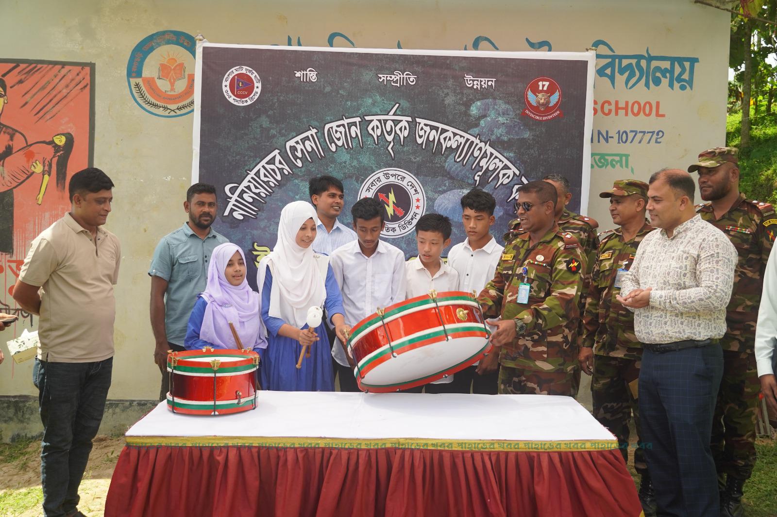২৩ সেপ্টেম্বর নানিয়ারচর জোনের আওতাধীন বগাছড়ি আল-আমিন উচ্চ বিদ্যালয়ের ছাত্র-ছাত্রীদের মাঝে ০১ টি বিগ ড্রাম, ০১ টি বিট ড্রাম এবং ০১ টি ফুটবল প্রধান শিক্ষকের নিকট হস্তান্তর করা হয়। এ সময় জোন উপ-অধিনায়ক বিও-৮২২০ মেজর শেখ মোহাম্মদ নাইমসহ অন্যান্য গণ্যমান্য ব্যক্তিবর্গ উপস্থিত ছিলেন।