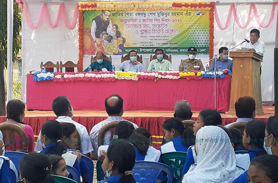 জাতির পিতার প্রতিকৃতিতে পুষ্পস্তবক অর্পণ, কেক কাটা, দোয়া ও মিলাদ মাহফিল, প্রার্থনা, আলোচনা সভা, শোভাযাত্রা, সাংস্কৃতিক অনুষ্ঠান,পুরস্কার বিতরনসহ নানা আয়োজনে ‘বঙ্গবন্ধুর জন্মদিনের অঙ্গিকার সকল শিশুর সমান অধিকার।’ এই প্রতিপাদ্য নিয়ে রাঙামাটির নানিয়ারচরে বঙ্গবন্ধুর জন্মদিন ও জাতীয় শিশু দিবস উদযাপিত হয়েছে।