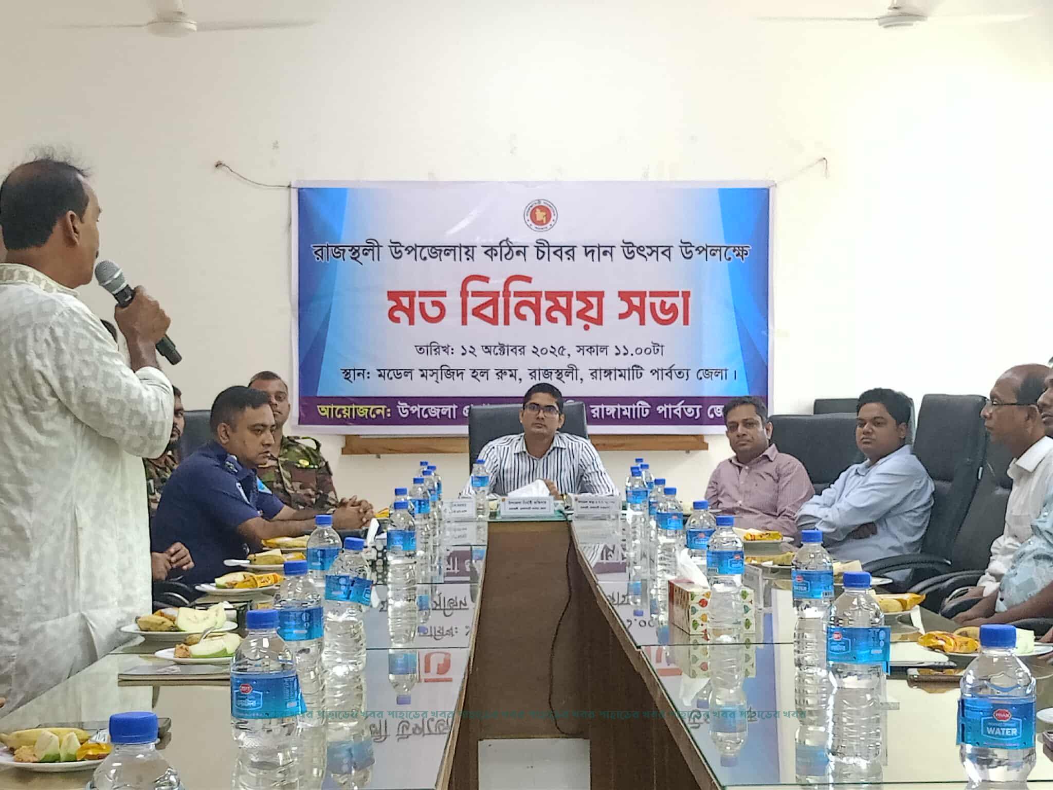 সভায় বক্তারা বলেন, কঠিন চীবর দান বৌদ্ধ ধর্মাবলম্বীদের অন্যতম গুরুত্বপূর্ণ ধর্মীয় উৎসব। এই উৎসবকে ঘিরে রাজস্থলীতে প্রতি বছর ব্যাপক আয়োজন হয়। শান্তিপূর্ণভাবে উৎসব উদযাপনে প্রশাসন, আইনশৃঙ্খলা বাহিনী, স্থানীয় জনপ্রতিনিধি এবং বৌদ্ধ সম্প্রদায়ের পারস্পরিক সহযোগিতা অত্যন্ত গুরুত্বপূর্ণ।