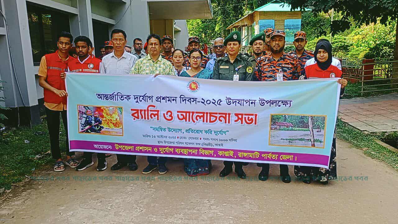 আন্তর্জাতিক দুর্যোগ প্রশমন দিবস’ উপলক্ষে কাপ্তাইয়ে র্যালী ও আলোচনা সভা অনুষ্ঠিত হয়েছে। ‘সমন্বিত উদ্যোগ, প্রতিরোধ করি দুর্যোগ’- এই প্রতিপাদ্যে কাপ্তাই উপজেলা প্রশাসন এবং উপজেলা দুর্যোগ ব্যবস্থাপনা বিভাগের আয়োজনে সোমবার (১৩ অক্টোবর) সকাল ১১ টায় দিবসটি উপলক্ষে কাপ্তাই উপজেলা পরিষদ এর সম্মেলন কক্ষ কিন্নরী তে আলোচনা সভা অনুষ্ঠিত হয়।