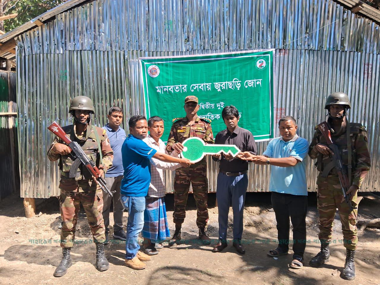 জুরাছড়িতে সেনাবাহিনীর উদ্যোগে আগুনে ভস্মীভূত গৃহ পুনঃনির্মাণ