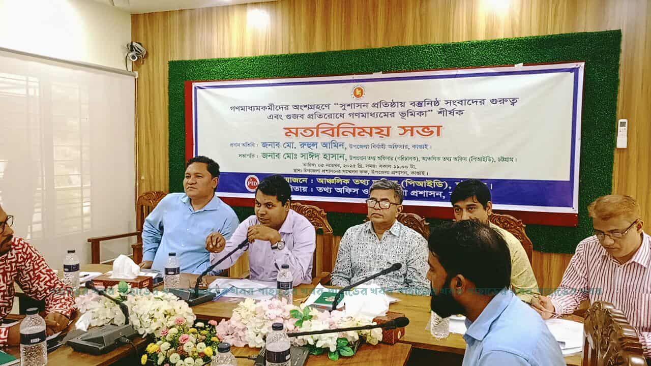 চট্রগ্রাম আঞ্চলিক তথ্য অফিস (পিআইডি) এর আয়োজনে এবং কাপ্তাই তথ্য অফিস ও কাপ্তাই উপজেলা প্রশাসনের সহযোগিতায় বুধবার (৫ নভেম্বর) সকাল ১১ টায় কাপ্তাই উপজেলা পরিষদ এর সম্মেলন কক্ষ কিন্নরী তে এই মতবিনিময় সভা অনুষ্ঠিত হয়।