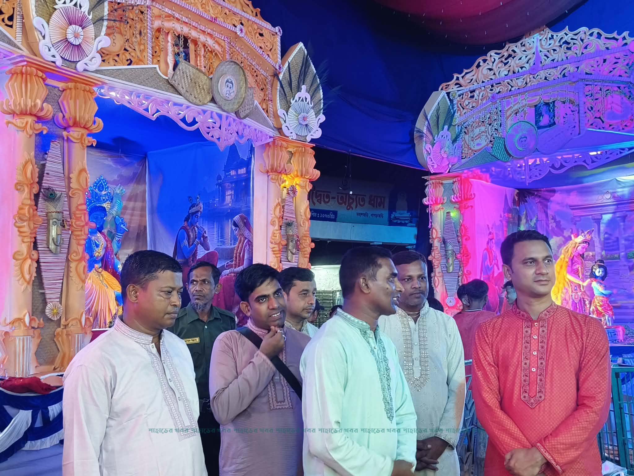 এ সময় উপস্থিত ছিলেন উপজেলা প্রেসক্লাবের সভাপতি দীপক সেন, পূজা পরিচালনা কমিটির সভাপতি বিপুল চৌধুরী, স্থানীয় জনপ্রতিনিধি, সমাজসেবক ও নানা শ্রেণি-পেশার মানুষ।