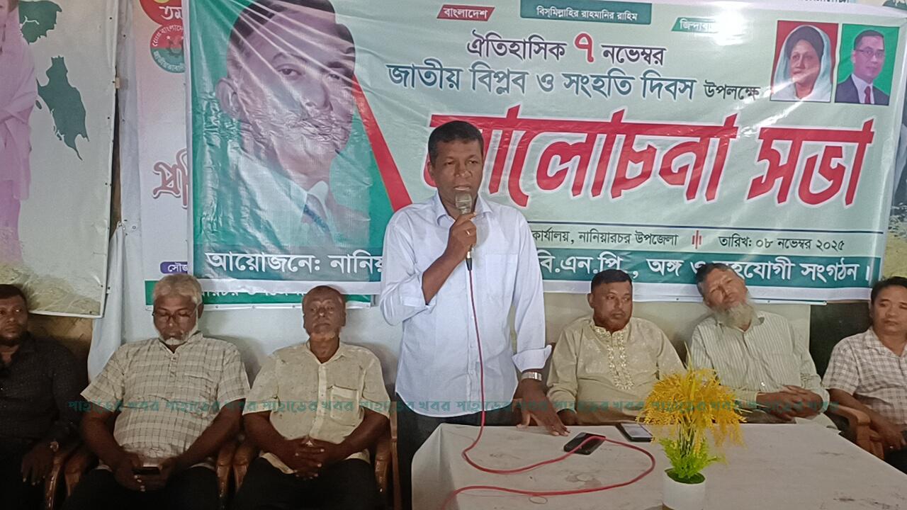 অনুষ্ঠানে প্রধান অতিথি হিসেবে বক্তব্য রাখেন জেলা বিএনপির সহ-সাধারণ সম্পাদক ও নানিয়ারচর উপজেলা বিএনপির সভাপতি মোঃ নুরুজ্জামান। তিনি বলেন, “৭ নভেম্বর দেশের স্বাধীনতা, গণতন্ত্র ও জাতীয় স্বার্থ রক্ষার এক গুরুত্বপূর্ণ অধ্যায়। এ দিনের চেতনাকে ধারণ করে জাতীয়তাবাদী শক্তিকে ঐকবদ্ধ হতে হবে।”