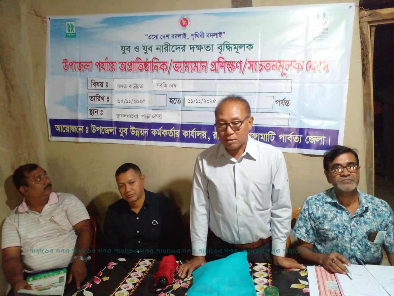 আজ (১১ নভেম্বর) ৫ থেকে ১১ তারিখ পর্যন্ত চলমান এ প্রশিক্ষণ কর্মসূচি অনুষ্ঠিত হয়, ছাগলখাইয়া পাড়া কেন্দ্রে। প্রশিক্ষণের মূল বিষয় ছিল বসতবাড়িতে সবজি চাষ ও নার্সারি বিষয়ক কার্যক্রম।কর্মসূচির আয়োজন করে যুব উন্নয়ন অধিদপ্তর, যার সার্বিক তত্ত্বাবধানে ছিলেন রাজস্থলী উপজেলা যুব উন্নয়ন কর্মকর্তা প্রিয় রতন চাকমা।