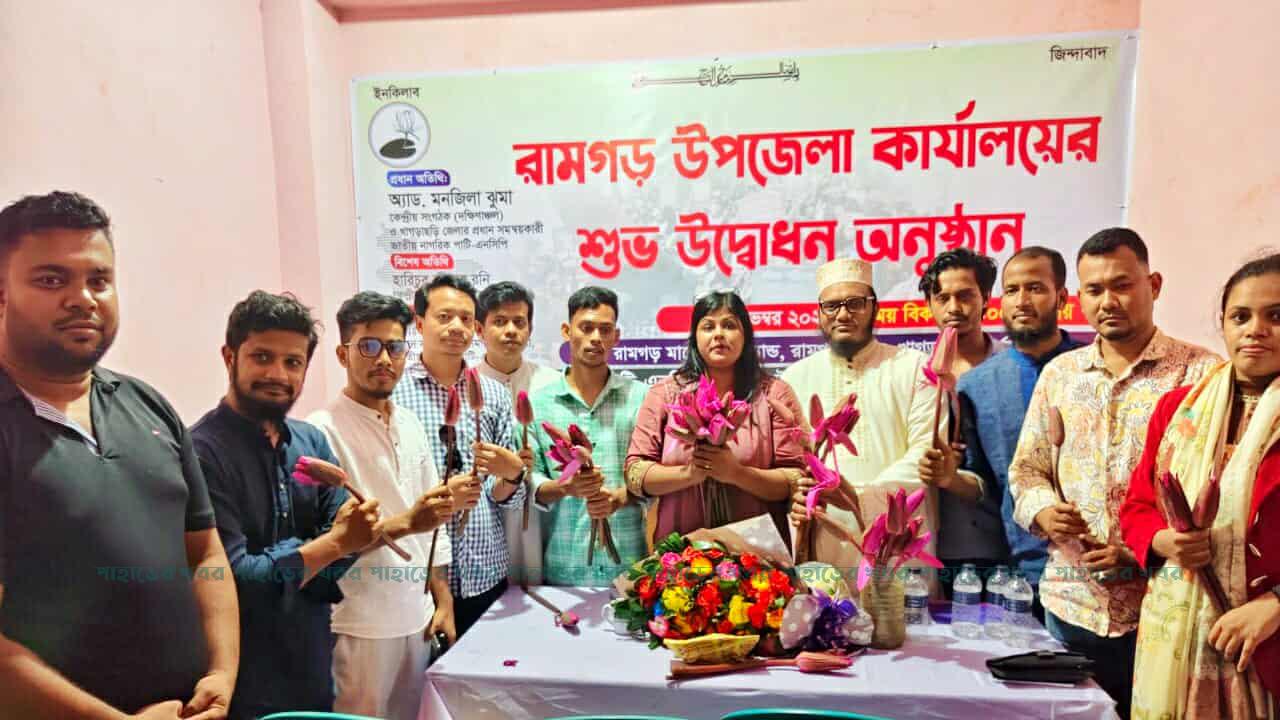 পার্বত্য জেলা খাগড়াছড়ির রামগড়ে জাতীয় নাগরিক পার্টি-এনসিপি’র উপজেলা কার্যালয়ের শুভ উদ্বোধন করা হয়েছে।আজ বুধবার (১২ নভেম্বর) বিকেল রামগড় মার্কেটে জাতীয় নাগরিক পার্টি-এনসিপি রামগড় উপজেলা শাখার আয়োজনে অনুষ্ঠানে প্রধান অতিথি ছিলেন, জাতীয় নাগরিক পার্টি-এনসিপির কেন্দ্রীয় সংগঠক (দক্ষিণ অঞ্চল) ও খাগড়াছড়ি জেলার প্রধান সমন্বয়কারী অ্যাডভোকেট মনজিলা ঝুমা।