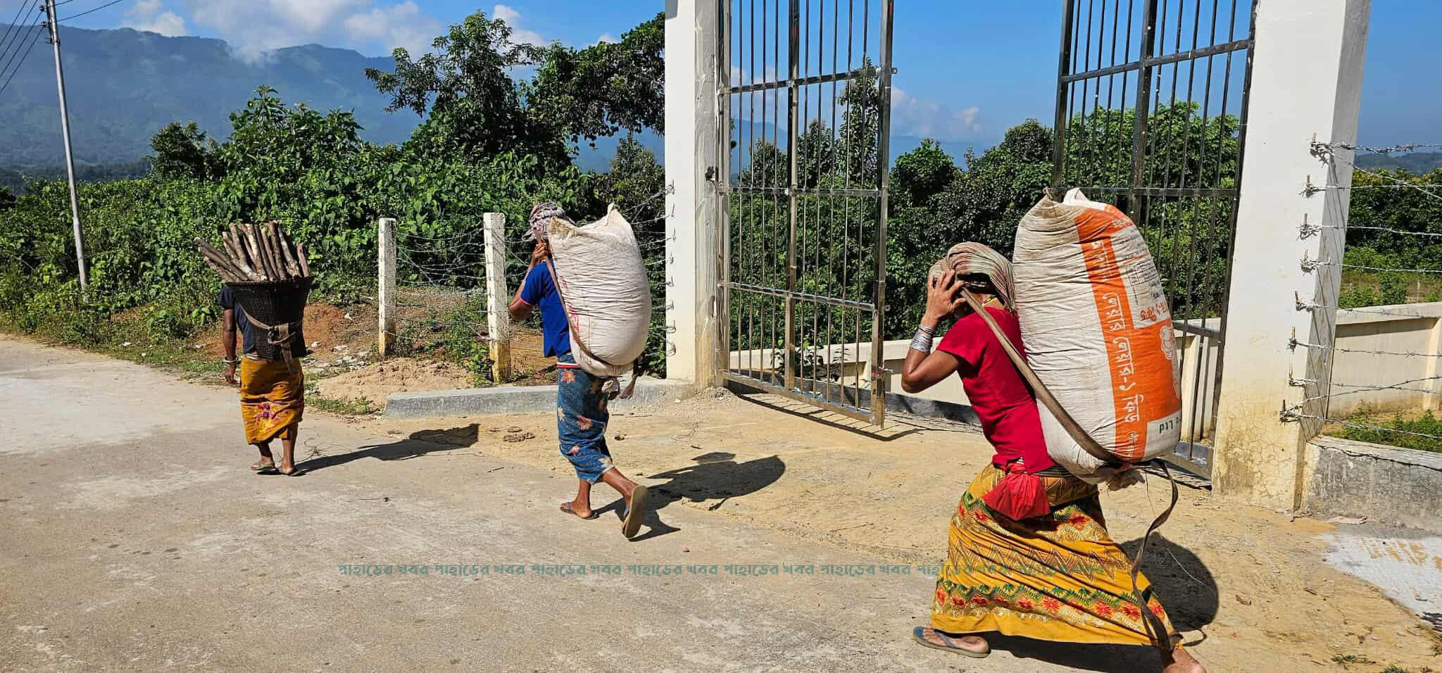কারও পিঠে বুনো জ্বালানিকাঠে বোঝাই ঝুড়ি, কারও কাঁধে নিত্যপ্রয়োজনীয় সামগ্রীর ভারী বস্তা—তবু কেউই পিছিয়ে নেই জীবিকার পথে। পাহাড়ের খাড়া ও আঁকাবাঁকা রাস্তায় প্রতিদিন কয়েক কিলোমিটার পথ হেঁটে বাজারে যাওয়া বা পণ্য বহন করা তাদের জীবনের স্বাভাবিক অংশ। ক্লান্তি তাদের কাছে যেন এক বিলাসিতা; দায়িত্ব আর পরিবারই তাদের প্রেরণা।