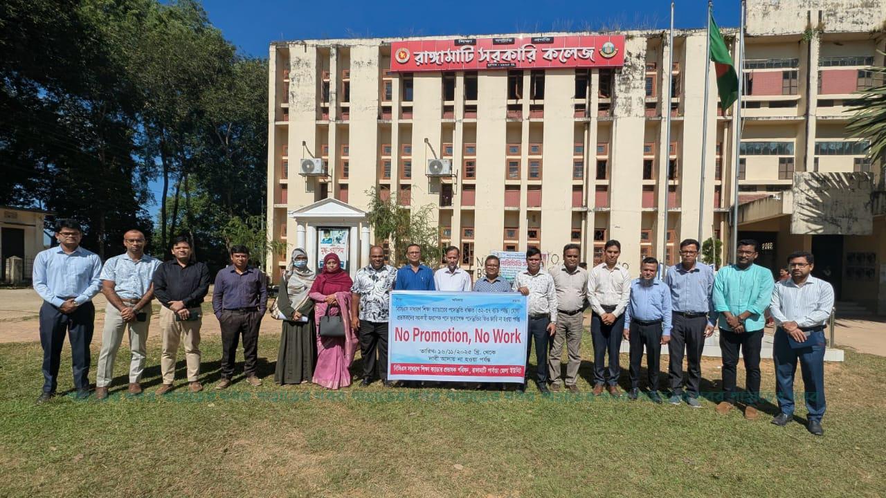 ৩২তম থেকে ৩৭তম ব্যাচ পর্যন্ত পদোন্নতিবঞ্চিত যোগ্য প্রভাষকদের জন্য ভূতাপেক্ষ পদোন্নতির সরকারি আদেশ জারি না হওয়ায় দেশের সব সরকারি কলেজের মতো রাঙামাটি সরকারি কলেজেও প্রভাষকরা ক্লাস নেওয়া, পরীক্ষা দায়িত্ব পালনসহ সকল দাপ্তরিক কাজ থেকে বিরত ছিলেন।