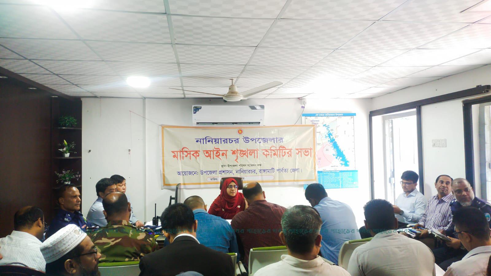 মঙ্গলবার (১৮ নভেম্বর) বেলা ১১টায় নানিয়ারচর উপজেলা নির্বাহী কর্মকর্তা বিবি করিমুন্নেছা এর সভাপতিত্বে এই সভা অনুষ্ঠিত হয়।সভায় নানিয়ারচর উপজেলা প্রশাসনের কর্মকর্তা, ইউনিয়ন পরিষদ চেয়ারম্যানগণ তাদের স্ব স্ব দপ্তরের প্রশাসনিক কার্যক্রম সমূহ তুলে ধরেন।