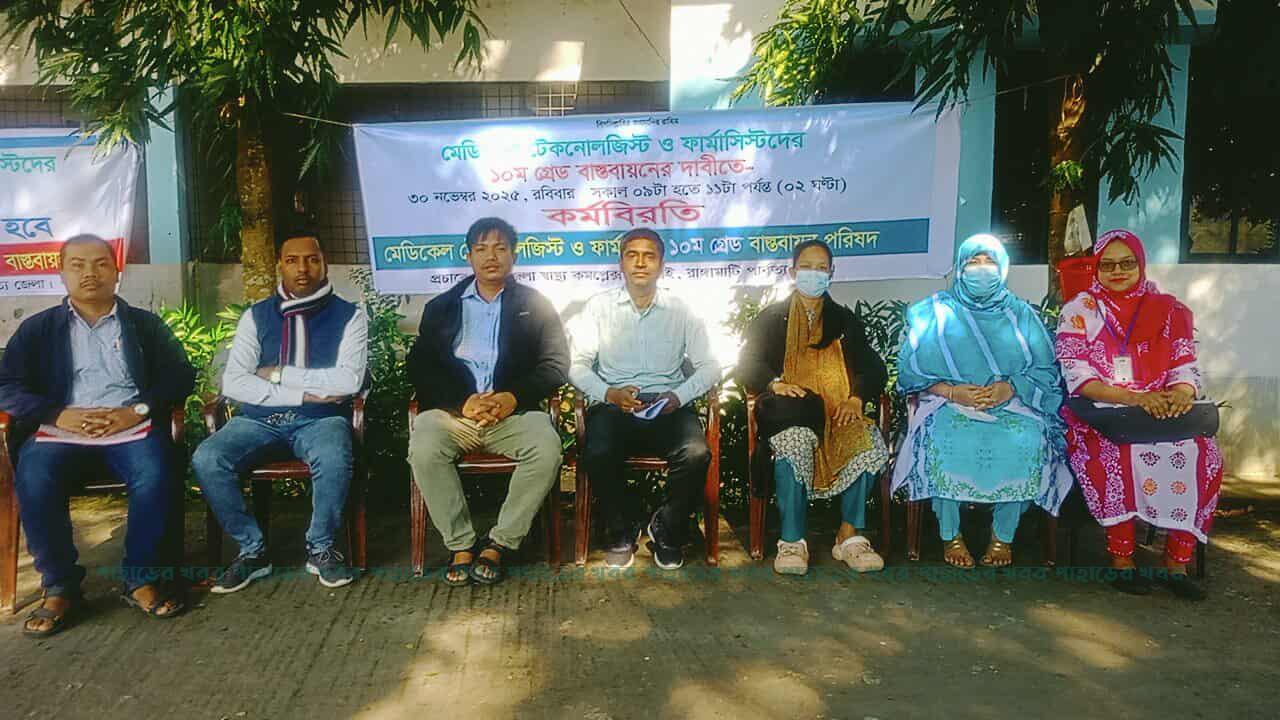 কাপ্তাইয়ে মেডিকেল টেকনোলজিস্ট ও ফার্মাসিস্টদের ১০ম গ্রেড বাস্তবায়নের দাবিতে কর্মবিরতি