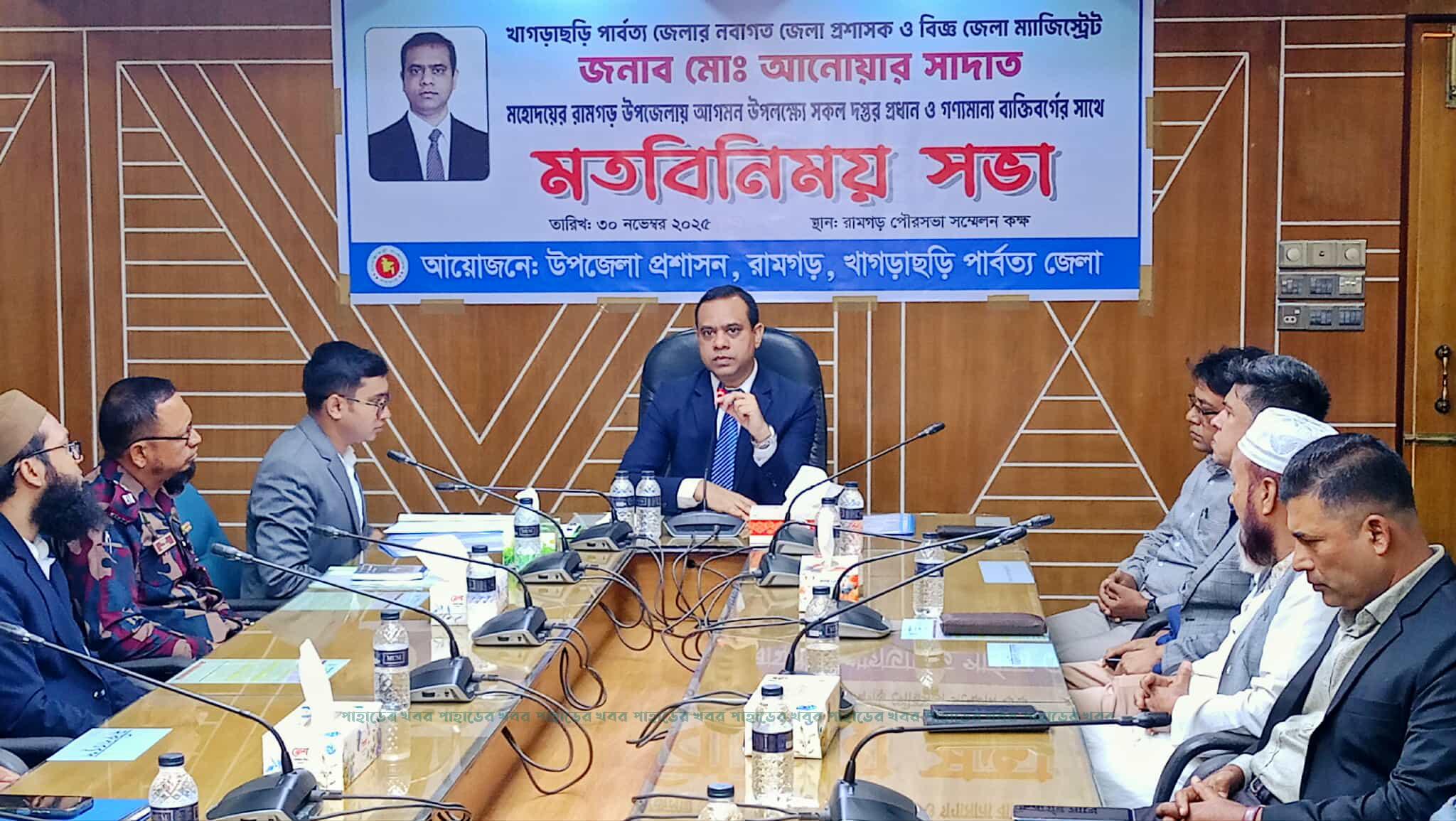রবিবার (৩০ নভেম্বর) সকালে রামগড় পৌরসভার সম্মেলন কক্ষে এ মতবিনিময় সভার আয়োজন করে উপজেলা প্রশাসন। উপজেলা নির্বাহী অফিসার কাজী শামীম এর সভাপতিত্বে সভায় প্রধান অতিথি ছিলেন নবাগত জেলা প্রশাসক ও বিজ্ঞ জেলা ম্যাজিস্ট্রেট মো. আনোয়ার সাদাত।
