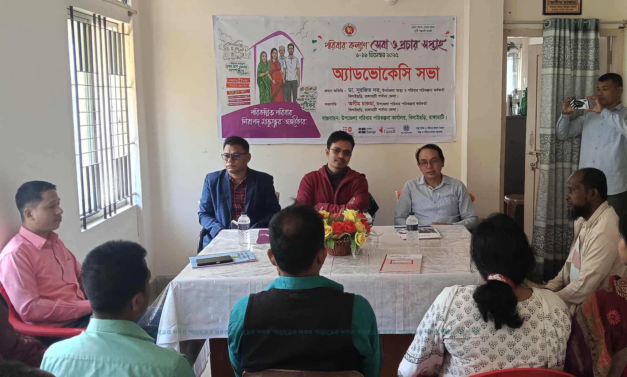 বিলাইছড়িতে পরিবার কল্যাণ সেবা ও প্রচার সপ্তাহ উপলক্ষে এডভোকেসি সভা অনুষ্ঠিত হয়েছে। সোমবার (৮ ডিসেম্বর) সকাল ১১ ঘটিকায় উপজেলা পরিবার পরিকল্পনা কার্যালয় বিলাইছড়ি এর বাস্তবায়নে কনফারেন্স রুমে এই সভা অনুষ্ঠিত হয়েছে।