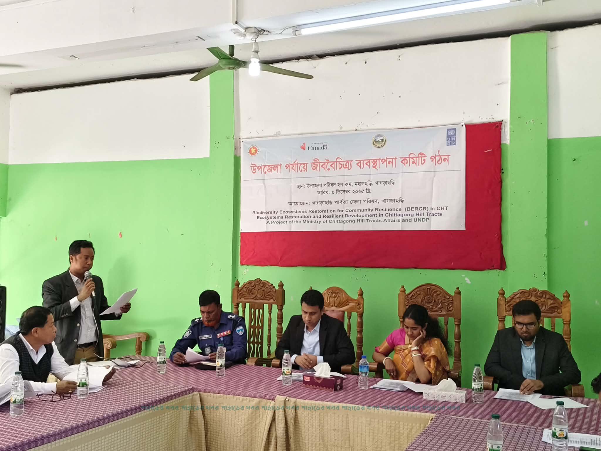 ইউএনডিপি এর কারিগরি সহায়তায় খাগড়াছড়ি পার্বত্য জেলা পরিষদ কর্তৃক বাস্তবায়িত Biodiversity Ecosystem Restoration for Community Resilience in CHT প্রকল্পের আওতায় মহালছড়ি উপজেলায় উপজেলা পর্যায়ে জীববৈচিত্র্য ব্যবস্থাপনা ও তদারক কমিটি গঠনের লক্ষ্যে আলোচনা সভা অনুষ্ঠিত হয়েছে।