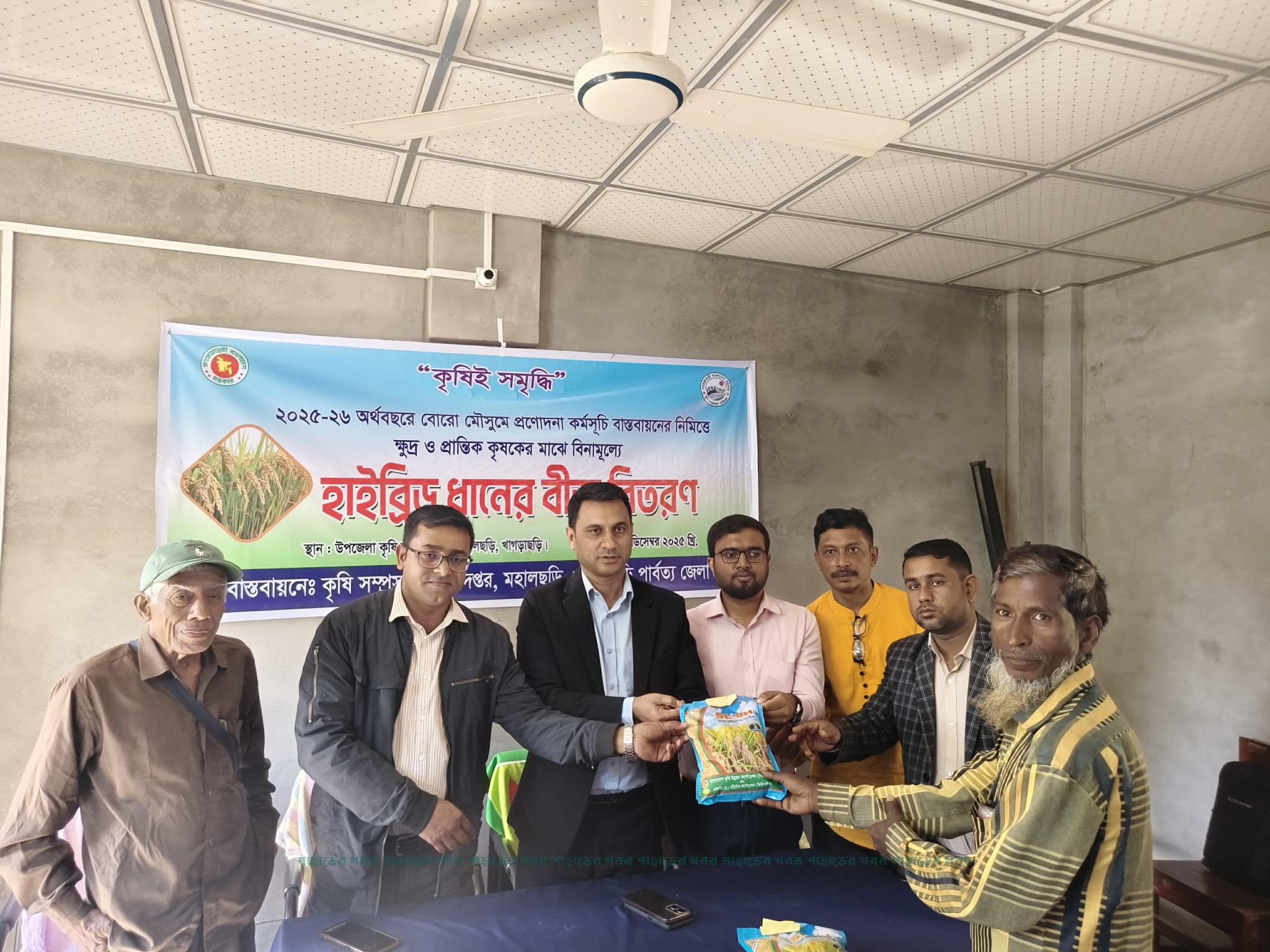 “কৃষিই সমৃদ্ধি” এই স্লোগানকে সামনে রেখে ২০২৫-২৬ অর্থবছরের বোরো মৌসুমে প্রণোদনা কর্মসূচির আওতায় খাগড়াছড়ির মহালছড়িতে ক্ষুদ্র ও প্রান্তিক কৃষকদের মাঝে বিনামূল্যে হাইব্রিড ধানের বীজ বিতরণ করা হয়েছে।