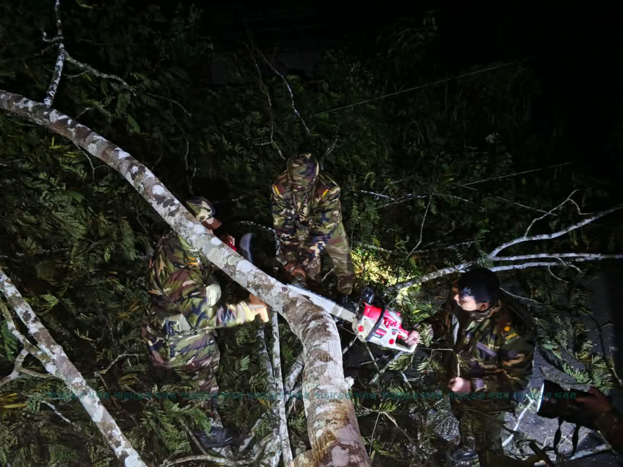 রাতেই সেনাবাহিনীর সদস্যরা গাছের গুঁড়ি সরিয়ে নিতে কাজ করে। ২১ ঘন্টা পর সাজেক সড়কে পর্যটকের যান চলাচল স্বাভাবিক করে সেনাবাহিনী। তবে এখনো সাজেক বিদুৎ সংযোগ সম্ভব হয়ে উঠেনি।