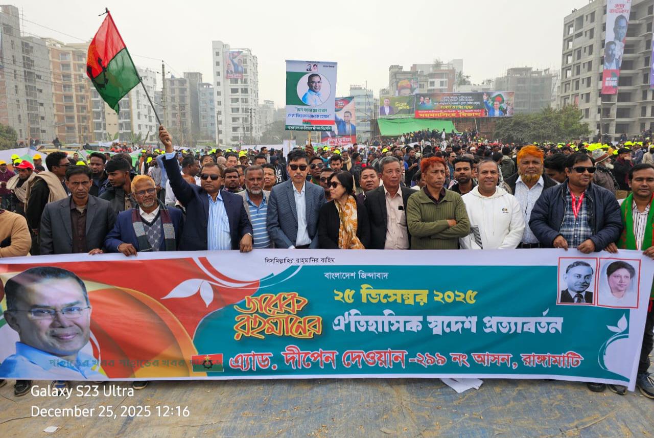তারেক জিয়ারকে স্বাগত জানাতে দীপেন দেওয়ানের নেতৃত্বে রাঙামাটি জেলা বিএনপি পরিবার
