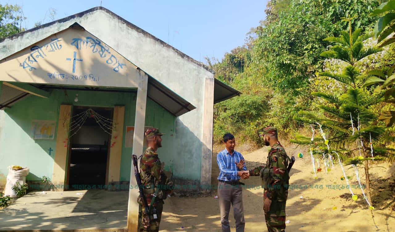 বড়দিন উপলক্ষে মহালছড়িতে সর্বাত্মক নিরাপত্তা জোরদার, সেনা সদস্যদের টহল