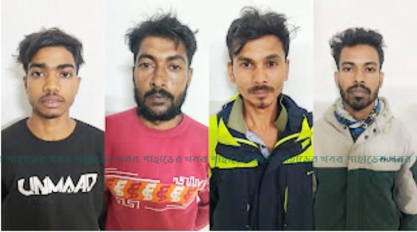 গ্রেপ্তারকৃতরা হলেন— মোঃ সিরাজ হোসেন (২৮), মোঃ রাকিবুল (১৯), মোঃ মনির হোসেন (৩৫) এবং মোঃ শহিদুল ইসলাম (৩০)।